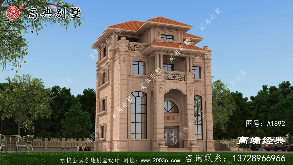 近两年来很受欢迎的欧式石材三层别墅风格,简洁大气,带有传统国外的韵味,低调中透着奢华。